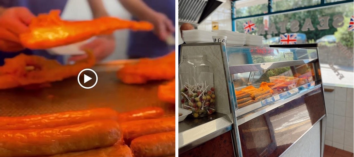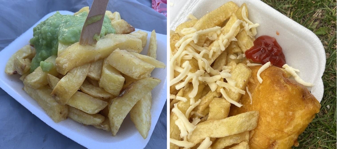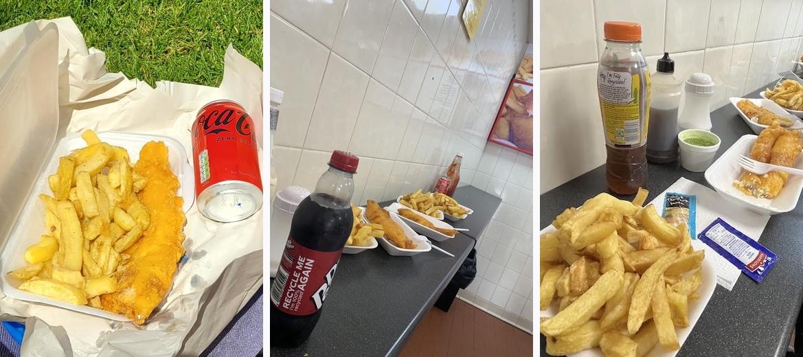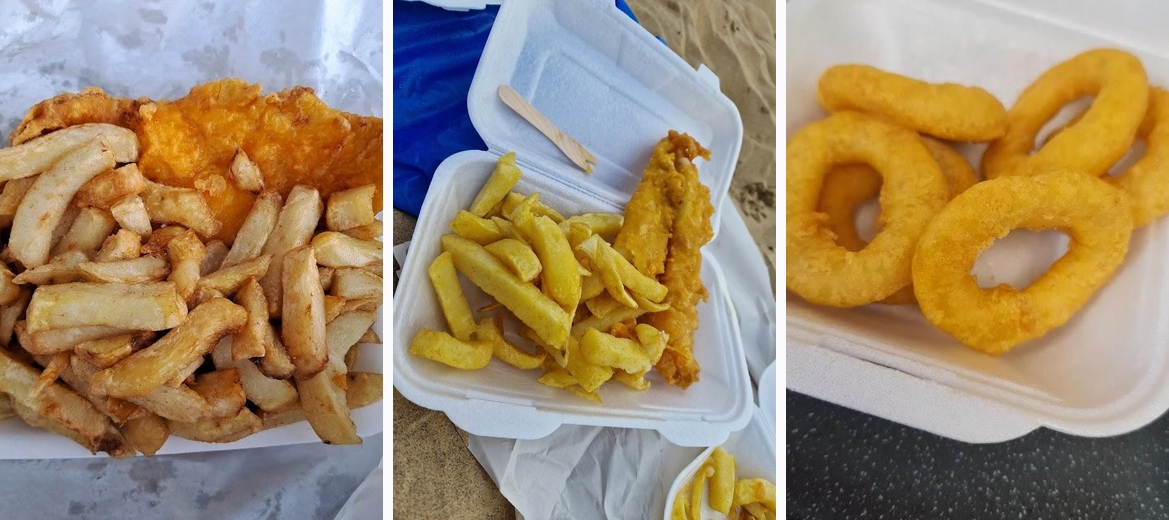 Walked from the beach to buy sausage & chips plus fish cake & curry sauce to eat on the beach - freshly cooked, delicious & good price. Staff very friendly & helpful. Only a few minutes walk and well worth it. Thank you